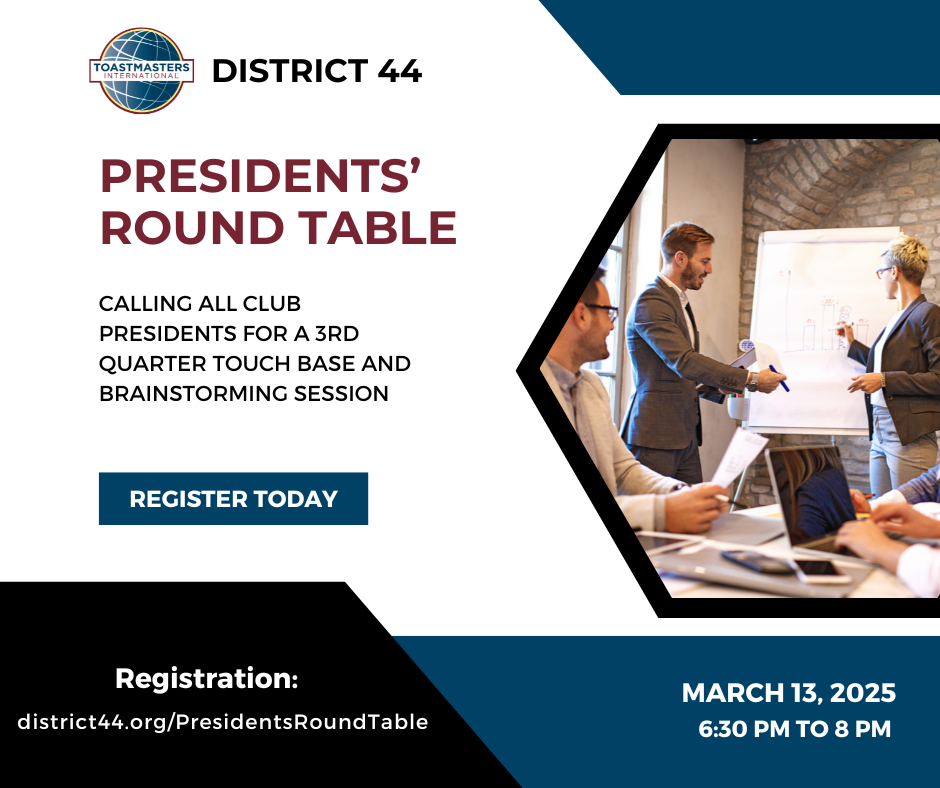 Don’t miss this opportunity to exchange ideas, tackle challenges, and elevate your leadership! Register today: district44.org/PresidentsRoundTable